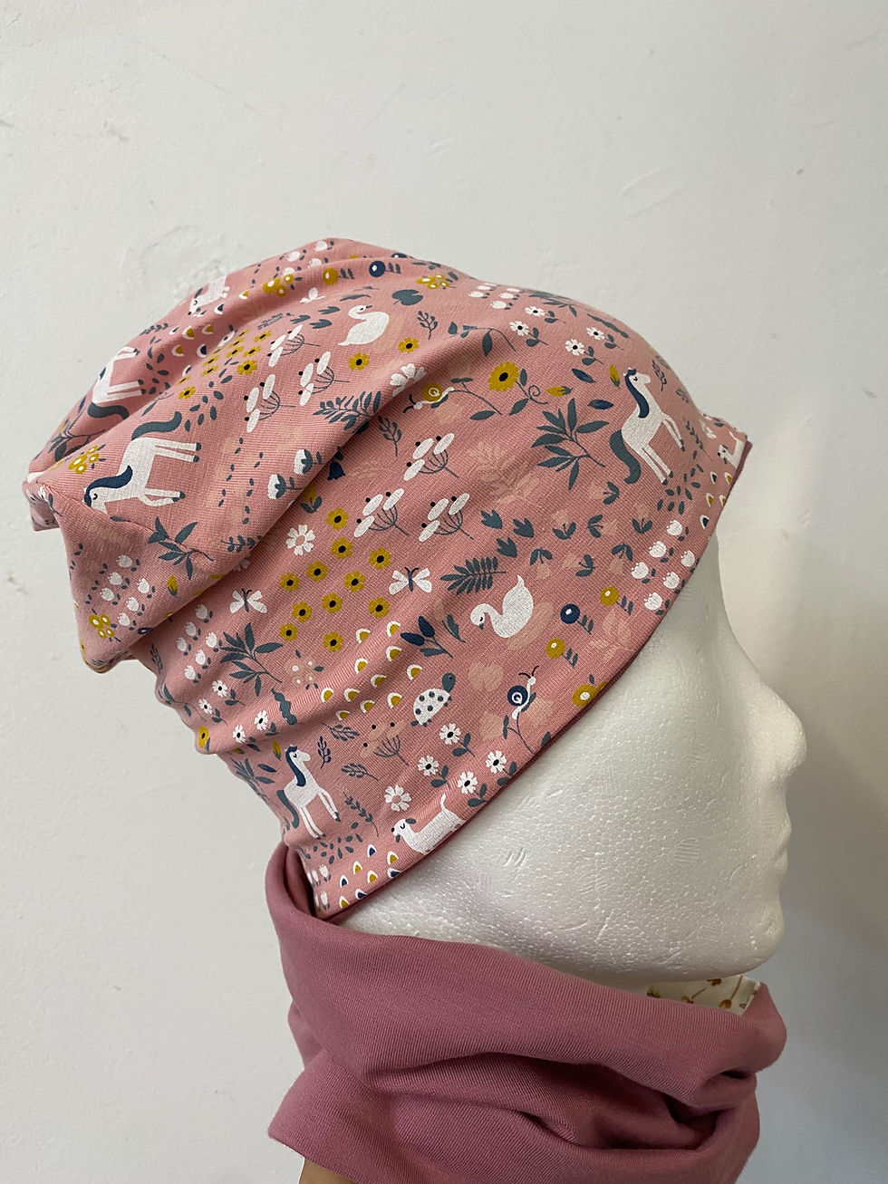 Jersey triangular scarf to match jacket or overall with snap fastener